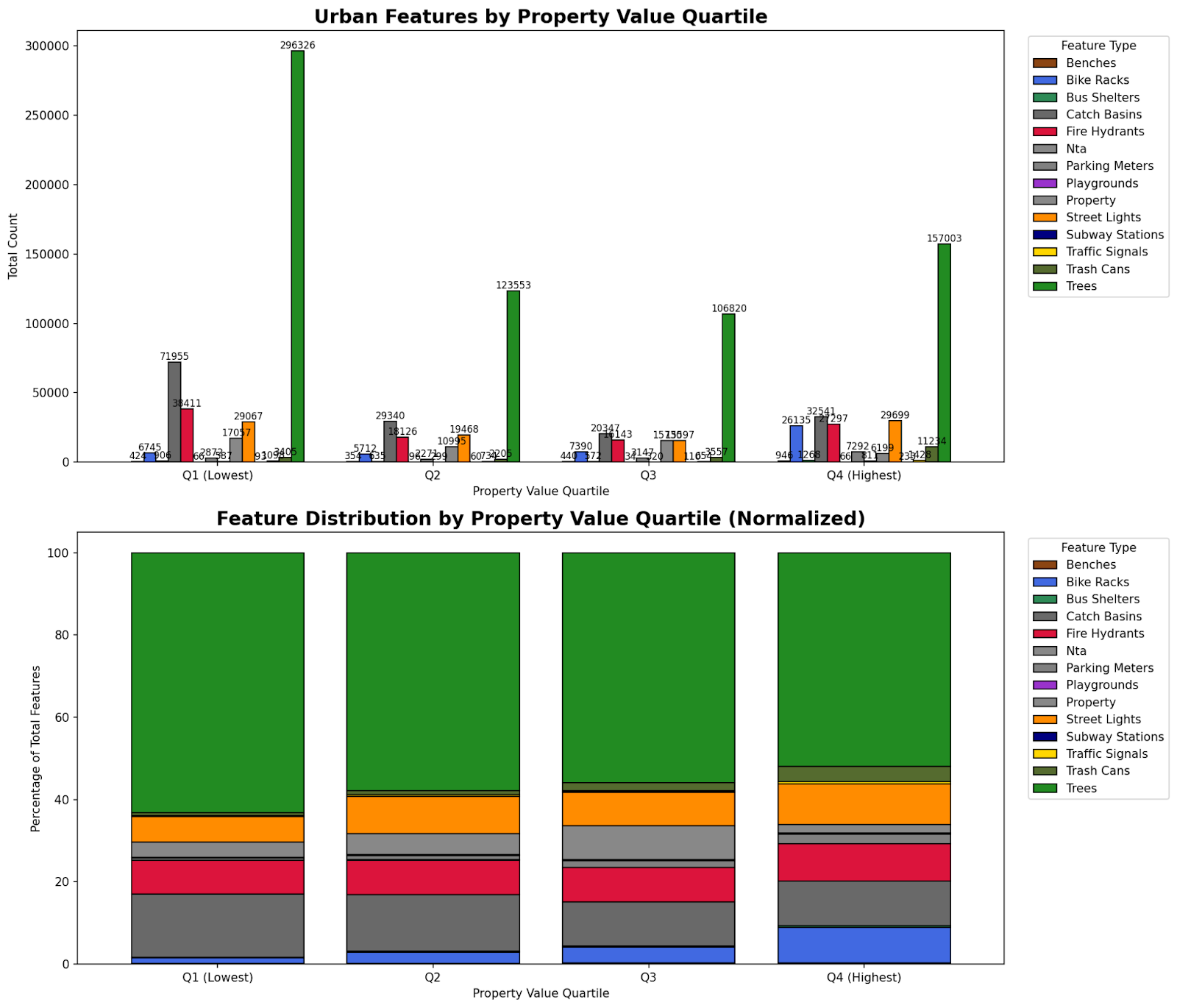 I pulled NYC’s public data on every piece of public infrastructure and mapped it against property values. The results are, unfortunately, not great; it looks like the bulk of inventory is in the lowest property value areas.